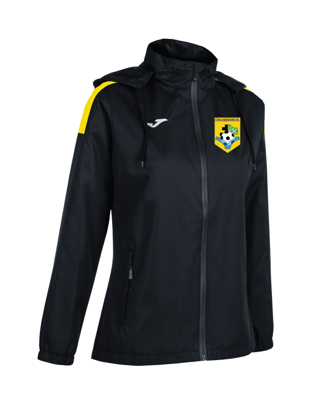 Imperméable ouvert avec fermeture éclair et poignets élastiques réglables pour plus de confort. Il intègre une capuche cachée et des poches avec fermeture éclair dissimulée.